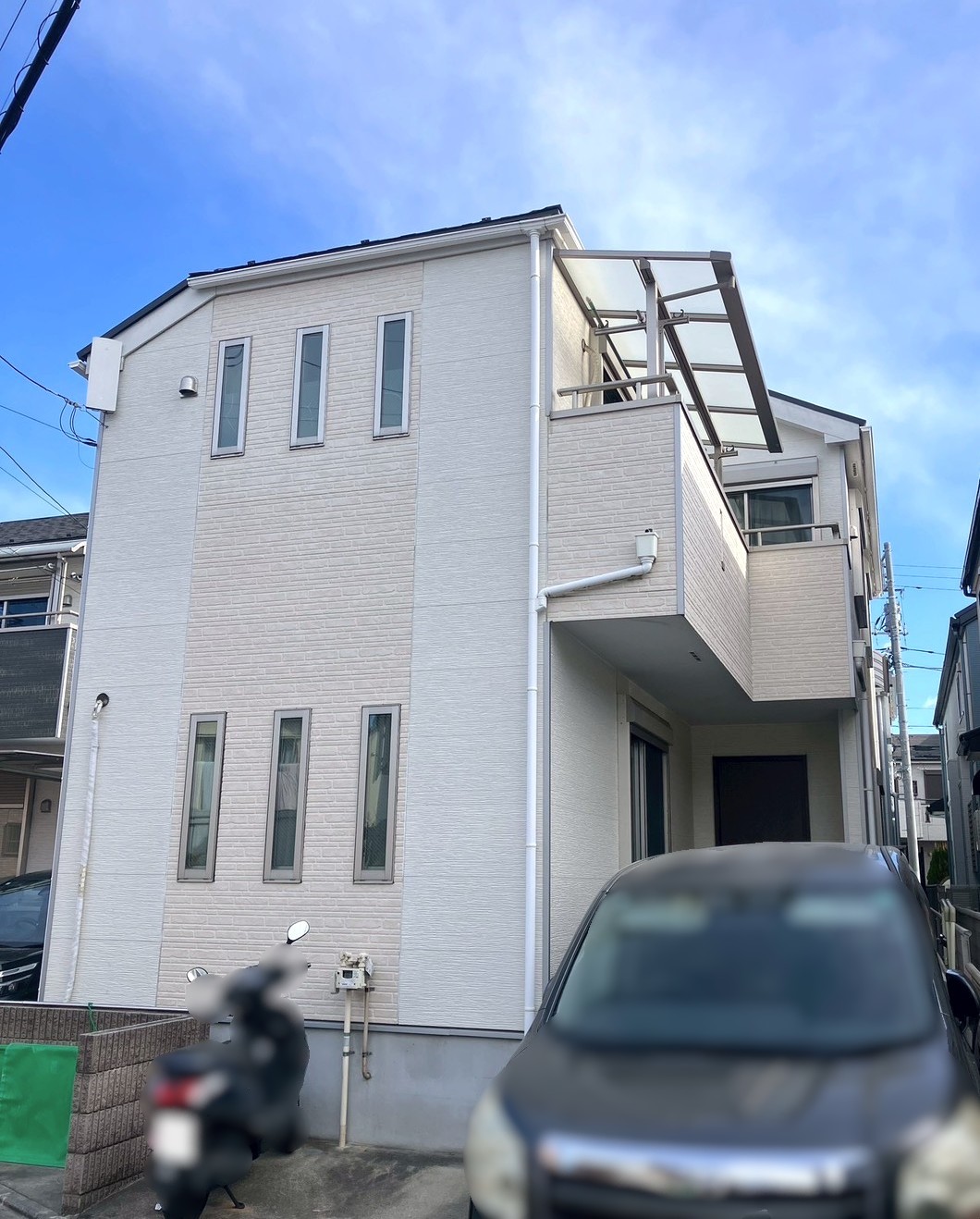 ご新規のお客様宅からのご依頼😊!経年劣化による外壁の亀裂、1階2階の波板がサビにより茶色く変色し穴あきや崩れがあり雨がベランダ部分へ垂れてき…